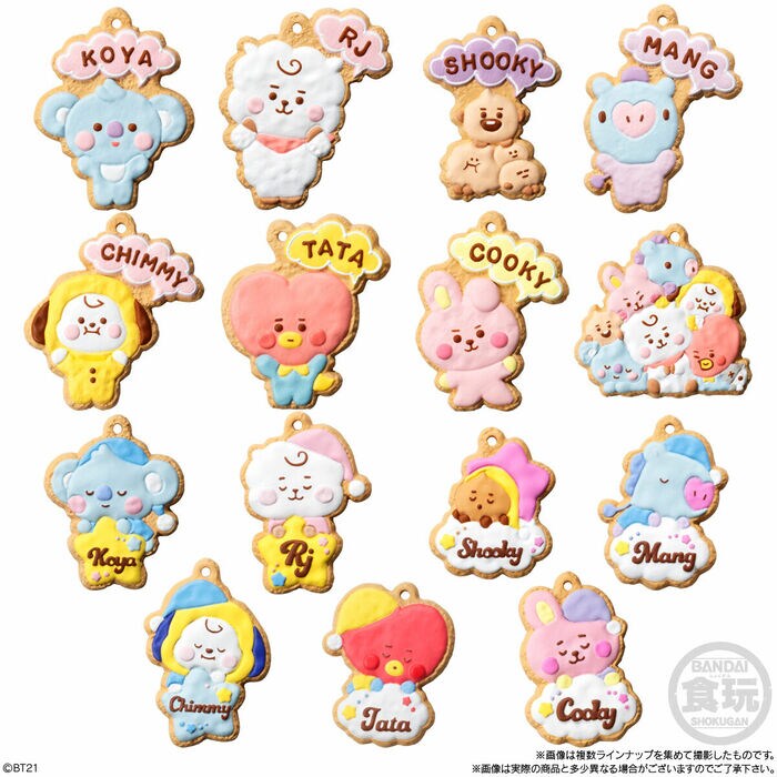 人気の高いBABYアレンジのキャラクターモチーフを使った、アイシングクッキー風のマスコットチャーム。淡い色味がかわいらしく、本物のクッキーのようなデザインです。SNSでは早くも箱買いしたというファンたちの声も。