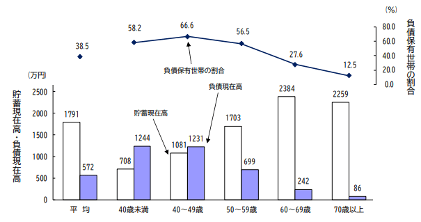 これは、マイホームを購入することなどにより、借り入れをしていることが主因かと思います。