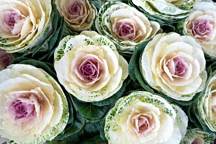 花言葉が「祝福」の葉牡丹(ハボタン)も正月にぴったりの植物。近年は茎が長い、切り花用のハボタンも流通しています。