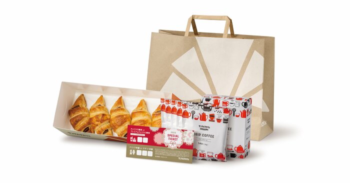 ・セット内容:スペシャルチケット(ドリンクorデザート半額3品分、チョコクロorプレミアムチョコクロ無料2品分)、ドリップコーヒー1箱(5袋入)、マグカップ