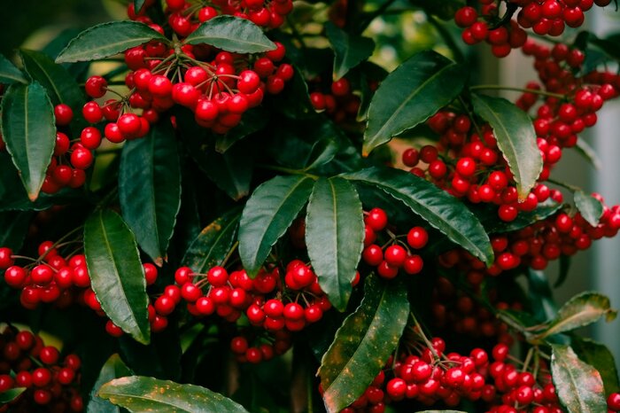 また、多くの実がたくさんの子孫を表すという意味で、子孫繁栄の木ともいわれています。お正月の生け花や庭木としてよく見かける縁起のよい観葉植物です。