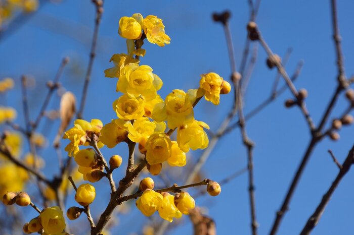 甘い香りの花を咲かせるロウバイは正月の縁起物。梅よりも早く春の訪れを告げる花として飾られることが多い庭木です。