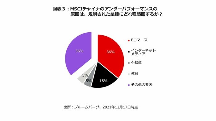 中国株式の不振の原因の大半はインターネット関連への規制であり、また教育関連サービスや不動産への規制の影響も受けている(図表3)。