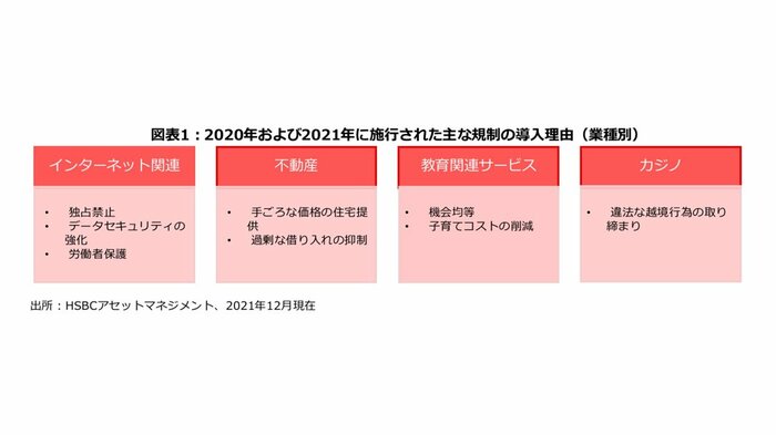 図表1は、過去2年間に施行された主な規制を示したものである。これ以外の要因としては、新型コロナウイルスや供給制約などが挙げられる。