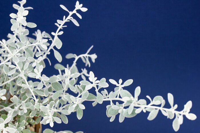 軟毛に覆われた真っ白の葉と、フェルトのような手触りが可愛いオレアリア・リトルスモーキー。ふわふわのホワイトリーフは、冬にほっこりと温かみのある印象をプラスしてくれます。