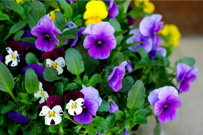 冬の花壇の花として、とてもポピュラーなパンジーやビオラ。寒さに強く丈夫なので初心者でも簡単に育てられます。アネモネの色と同系色を選ぶと統一感があってステキです。
