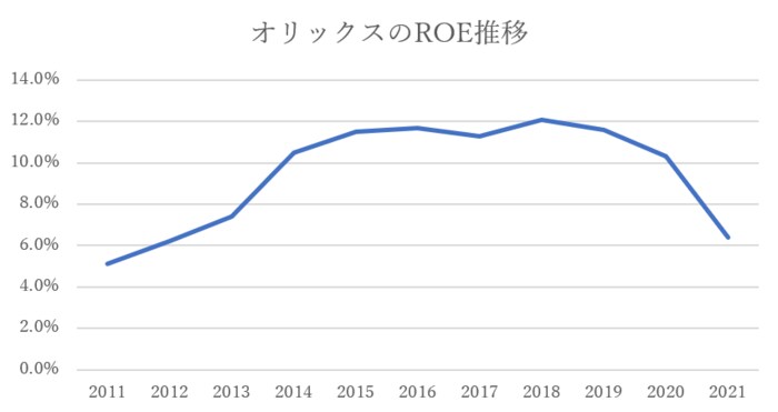 オリックスは2014年3月期から2020年3月期にかけて、ROE10%以上という高い資本効率性を維持してきました。2021年3月期はコロナの影響を受けて6%台に落ち込み、厳しい事業環境も相まって、さらなる悪化の恐れもありました。