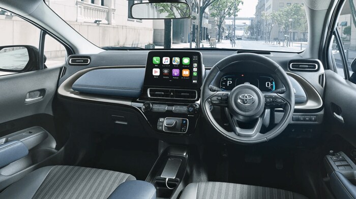インテリアは、シンプルでクリーンな空間を表現し、前方部のインストルメントパネル中央部に機能を集約。シフトレバーもインストルメントパネルに搭載し、トヨタの有名ハイブリッドカー「プリウス」と同じジョイスティックタイプを搭載しました。