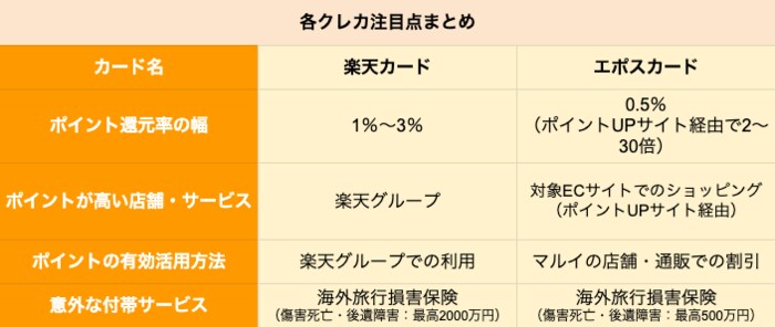 最後に、2つのカードの注目点をまとめました。