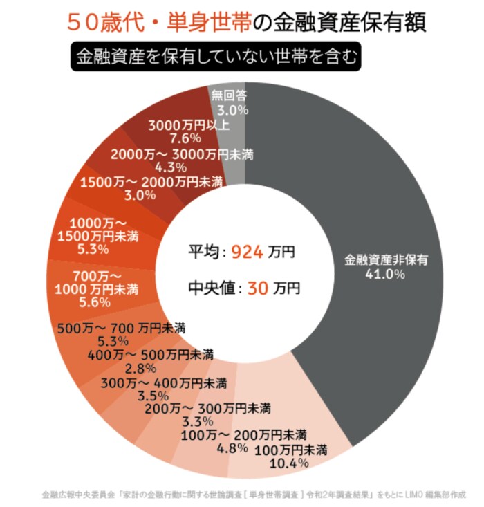 「50代おひとりさま」の貯蓄の中央値は30万円
