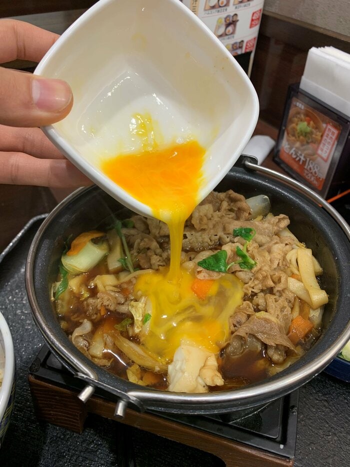 家族や仲間内ですき焼き鍋を囲むとき、お鍋に卵を入れるのを遠慮してしまう人も多いはず。この1人用鍋だからこそできる、夢のような食し方。ぜひご堪能あれ。