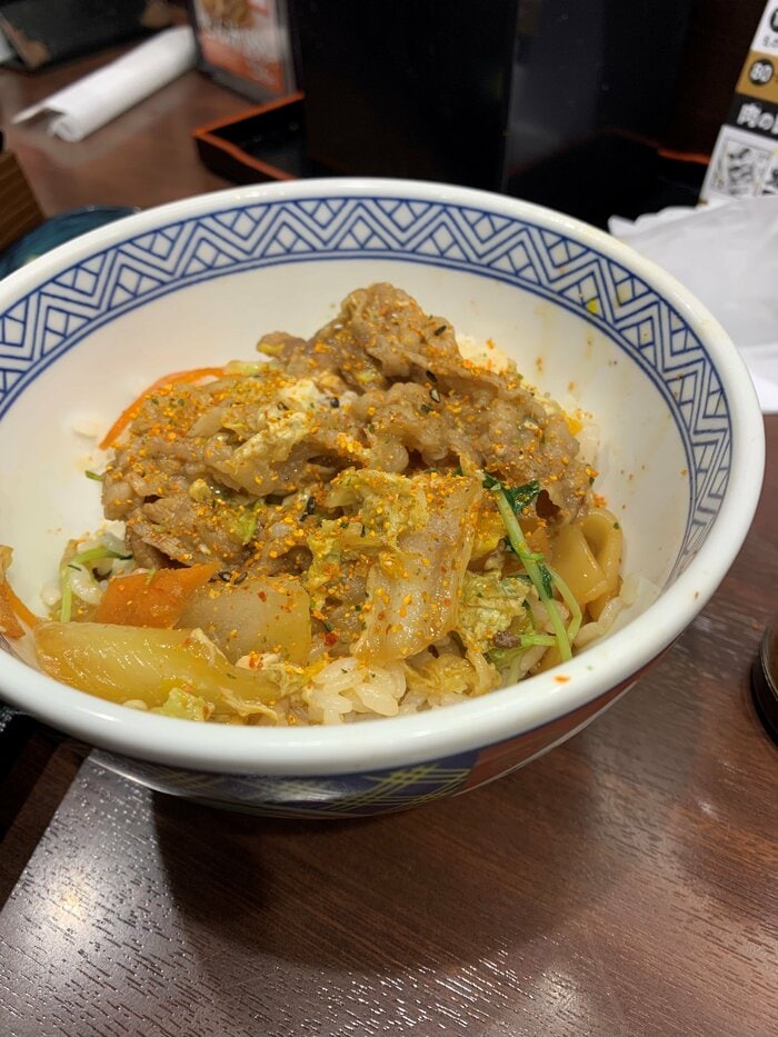白いご飯の上に全てを乗せたら「すき焼き丼」の完成です。お好みで唐辛子をかけても美味ですね。