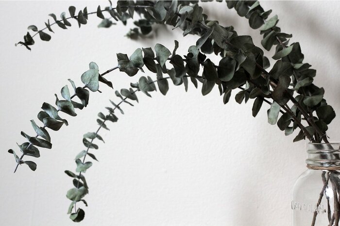 花ではありませんが、適度な厚みとシルバーがかったグリーンが魅力的なユーカリはドライフラワーの定番花材。丸葉品種のポポラスが人気ですが、さまざまな葉の形や色合いの品種があります。