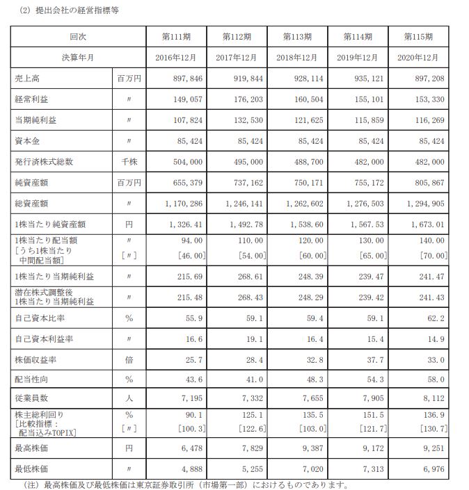 2020年度はコロナ禍にもかかわらず、順調に増配を続けています。