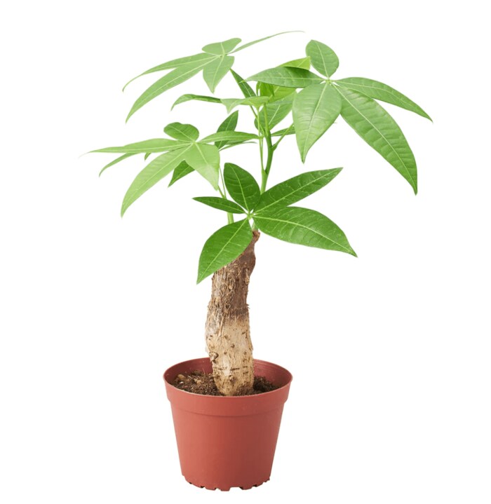 観葉植物を育てるのは初めてという方でも、パキラという名前は耳にしたことがあるかもしれません。乾燥に強い植物なので、水やりの頻度は控えめで大丈夫。初心者の方でも手に取りやすい観葉植物といえるでしょう。最初は高さ25cmほどですが、大きく成長していきます。その成長過程を楽しめるのもうれしいポイントです。寒さが少し苦手で、越冬温度が12度という点には注意が必要。冬場でも室内を暖かく保ってあげましょう。