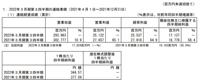 コメリ(8218)は2022年1月25日、2022年3月期Q3の決算を発表しました。