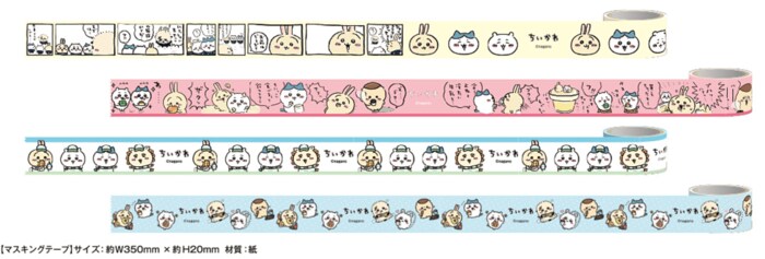 マスキングテープのデザインは全4種類。どれもちいかわや仲間たちがかわいくデザインされたアイテムとなっています。