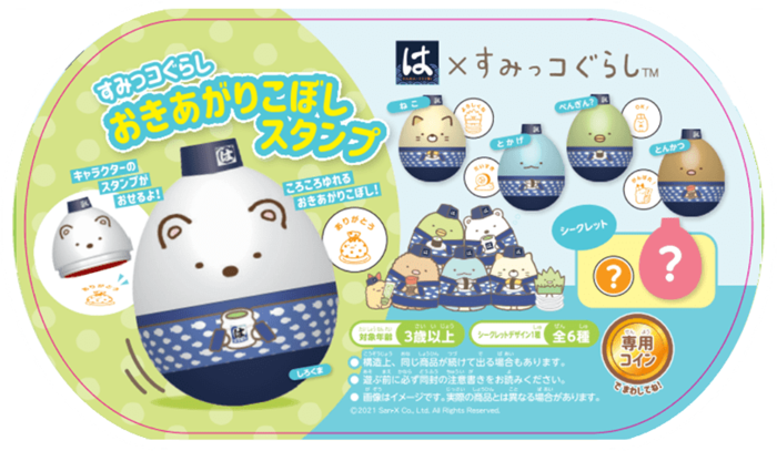 冷蔵庫やホワイトボードなどにくっつけると、すみっコたちが湯呑からひょっこり飛び出す「ひょっこりマグネット」。また、すみっコたちのスタンプも押せる「おきあがりこぼしスタンプ」も子供たちの心を鷲掴みにするアイテムです。どちらもシークレットデザインを含む全6種なので、何が出るか楽しみにしていてくださいね。
