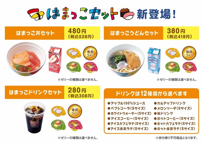 ・対象セット:はまっこ丼セット、はまっこうどんセット、はまっこドリンクセット