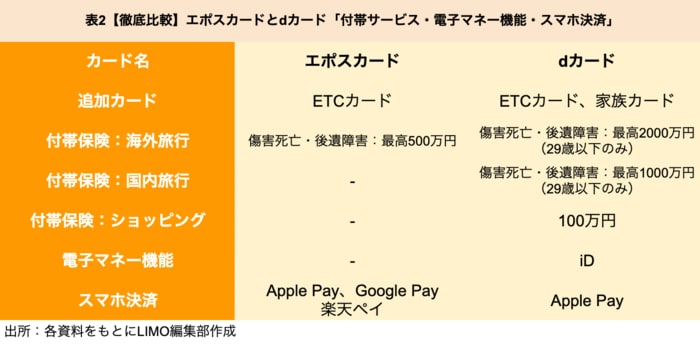 5.「付帯保険」はどちらが充実?【エポスカード VS dカード】