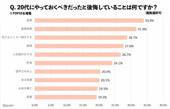 同調査をもとに30~40代が感じる20代の後悔を見ていきましょう。