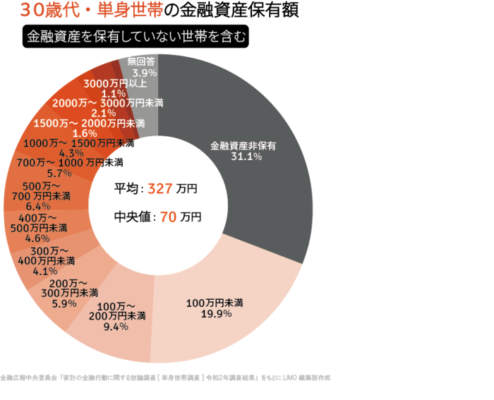 単身世帯の金融資産保有額(金融資産を保有しない世帯を含む)