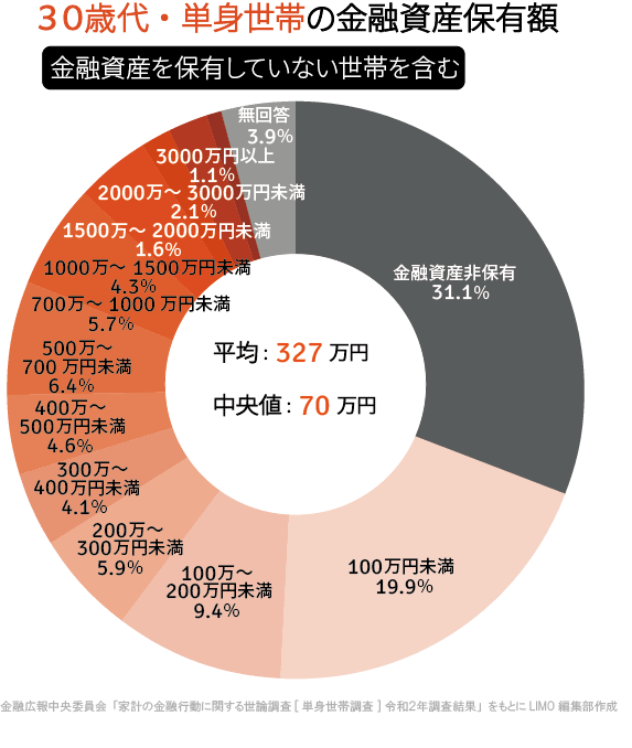 実際に30代のおひとりさまはいくら貯蓄を保有しているのでしょうか。金融広報中央委員会の「家計の金融行動に関する世論調査[単身世帯調査](令和2年)」より確認します。