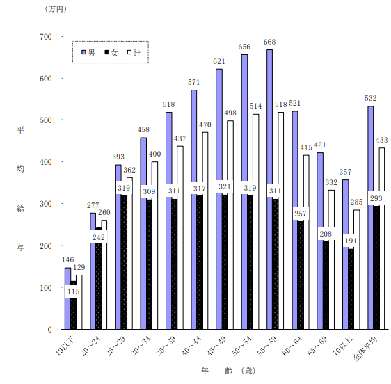 同調査では、男女別の年収は全体平均で男性532万円、女性293万円。(図表参照)