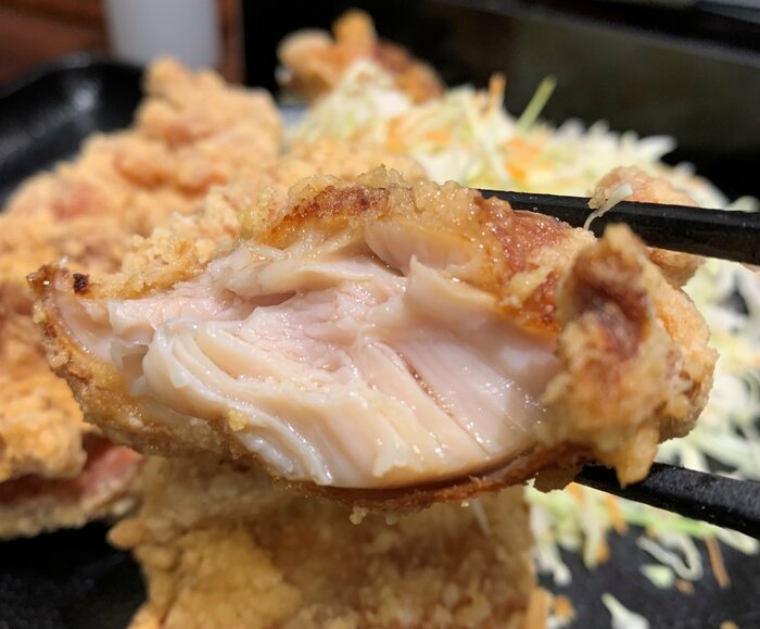 から揚げの中に旨みが閉じ込められていて、一口噛んだ瞬間に、肉汁が溢れ出てきます。