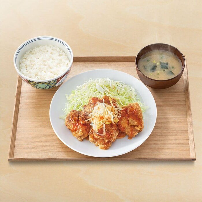 肉厚でジューシーな吉野家のから揚げに、醬油ベースのたれとねぎがよく合い、ご飯がとにかく進みます。ネットや口コミだと「神がかっている」などと非常に評判が良く、大人気メニューとして今後も注目されています。(※油淋鶏丼もあります)