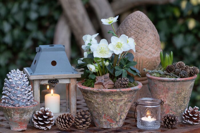 クリスマスローズで寄せ植えを作ったものの、毎年葉が茂るだけでガッカリすることもあるでしょう。鉢植えで観賞用に飾りたい場合は、すでに蕾がついている開花株や開花見込み株を購入するのがオススメです。