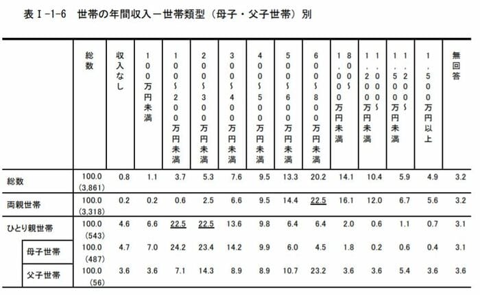 そもそもの根拠となる調査は「国民生活基礎調査の概況」と「東京都福祉保健基礎調査『東京の子供と家庭』」で異なるため、若干の齟齬はあると推測されます。