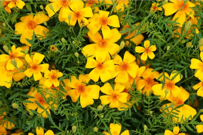 一年草のマリーゴールドは黄色やオレンジのビタミンカラーが特徴の花。品種が大変多く、花の咲き方が豊富なので好みに応じて選ぶことができます。
