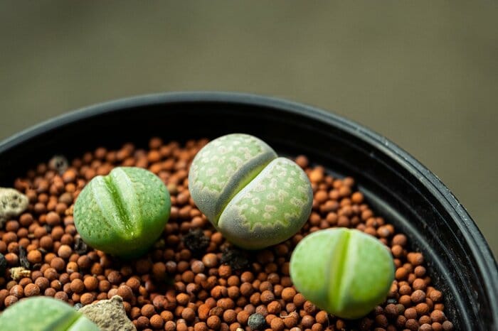 多肉植物の分類「メセン」の代表的な属の1つ。南アフリカ・ナミビア等の岩砂漠地帯に自生し風通しのよい環境を好みます。年に1度脱皮しながら少しづつ成長していきます。脱皮が始まったら水やりをストップしましょう。