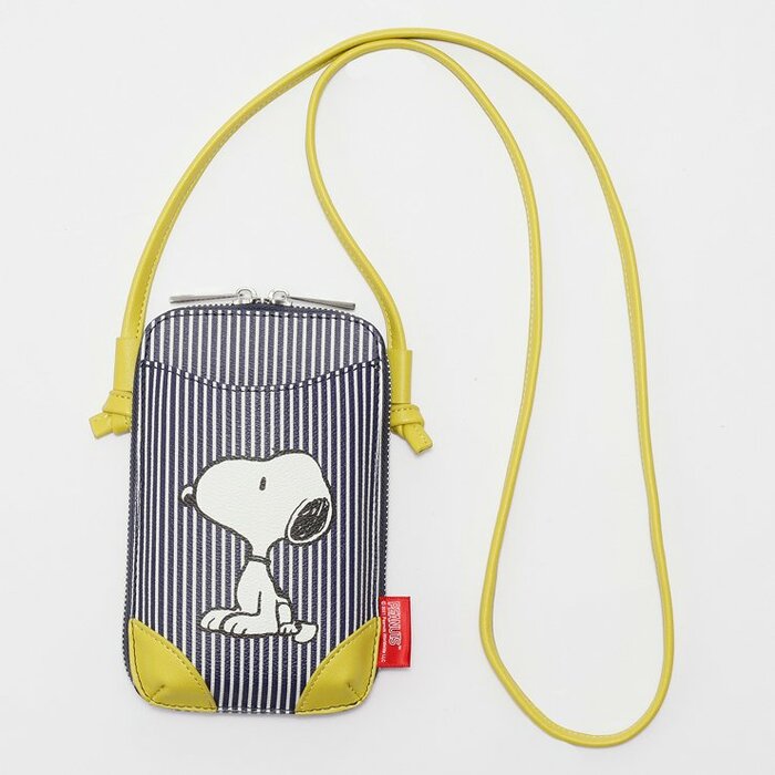 ヒッコリー柄にスヌーピーがとっても可愛いスマホショルダーです。手軽に外出したいときもこれ一つあればお出かけできるとても便利なサイズ感となっています。