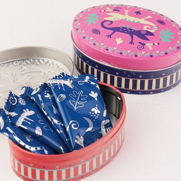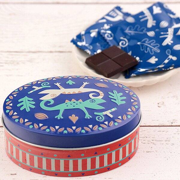 【カカオの森トカゲ缶 ブルー 1個】356円(税込)【カカオの森トカゲ缶 ピンク 1個】356円(税込)