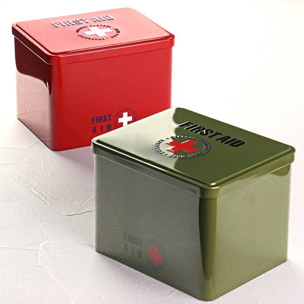 【ファーストエイド缶 レッド 1個】732円(税込)【ファーストエイド缶 カーキ 1個】732円(税込)
