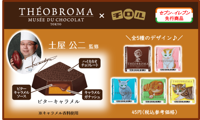 今回登場した「チロルチョコ〈テオブロマビターキャラメル〉」は、チョコレート専門店「テオブロマ」の土屋公二シェフが監修した本格的なチロルチョコです。