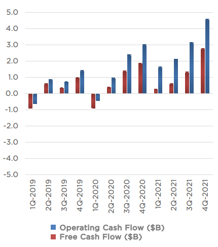 そのFCFが2020年第1四半期以降、FCFがプラスになり、拡大しています。