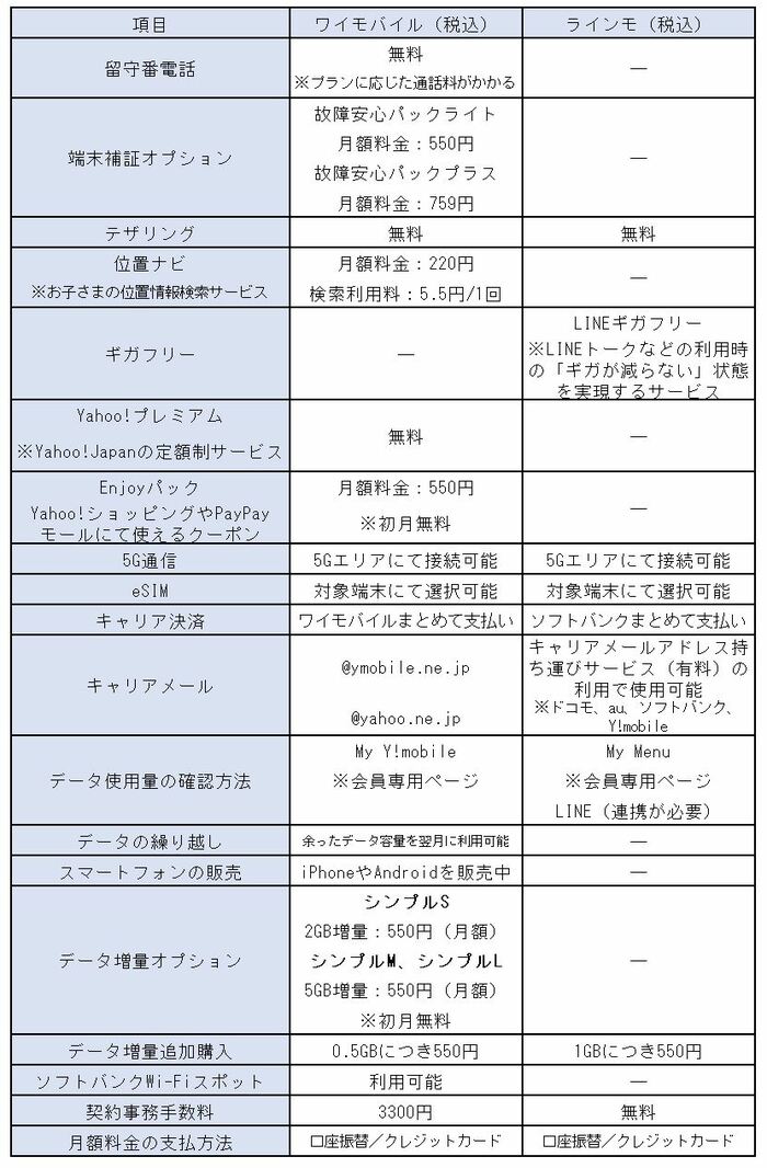 ワイモバイルvsラインモ。料金プラン・サービスを徹底比較 2022.02.16 07:15 公開 執筆者LIMO編集部 copy URL 目次[開く] 【ワイモバイルvsラインモ】料金プランの違いは? 【ワイモバイルvsラインモ】国内通話オプションの違いは? 【ワイモバイルvsラインモ】各種サービスの違いは? 「キャリアメールアドレス」が持ち運べるように まとめ 参考資料 【ワイモバイルvsラインモ】各種サービスの違いは? ワイモバイルとラインモのサービスには共通項もありますが、ワイモバイルならではのサービスのほうが豊富に用意されている印象です。 【ワイモバイルvsラインモ】各種サービスの違いは? ※LINEMO「ワイモバイルとの違い」を参考にLIMO編集部作成 「キャリアメールアドレス」が持ち運べるように < 1 2 3 > 関連タグ #ソフトバンク #ソフトバンクグループ 注目コンテンツ 上皮内がんも対象になるがん保険。1番人気のがん保険は?[PR] 30秒でオススメの医療保険の特約がわかる!保障で悩むならまずは診断[PR] 三大疾病に備える!人気の三大疾病保険を比較[PR]