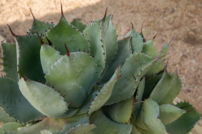 細長い葉が放射状に伸び、葉にトゲのある品種が多いアガベ属。キジカクシ科に属し、ワイルドな姿が魅力のカッコいい植物としてコレクターの注目を集める多肉植物です。