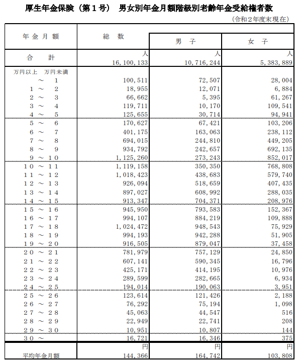 こうしてみると厚生年金の月額平均のボリュームゾーンは、月平均で9から10万円となっています。