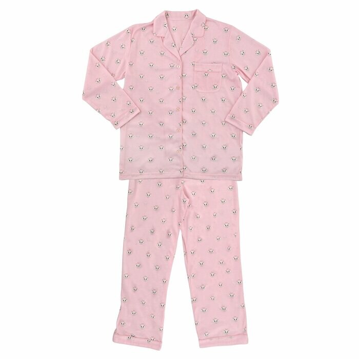 「シンデレラ」に登場するネコキャラクター、ルシファーの総柄プリントパジャマです。大人っぽいタッチで描かれた愛嬌たっぷりのフェイス柄デザインとなっています。