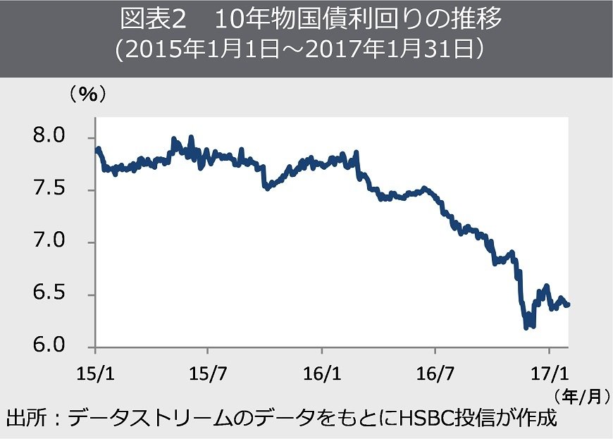 - 但し、2月に入り、インド準備銀行(中央銀行)が市場の利下げ予想に反して政策金利を据え置いたため、市場では失望売りからインド債券利回りは上昇している。