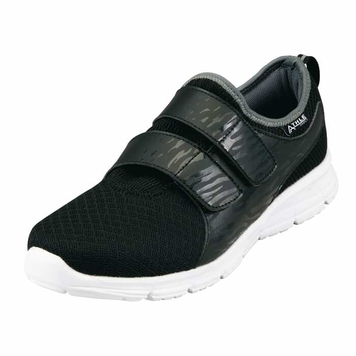 ダブル面ファスナーの靴で、マジックテープでササっと着脱できるのでとにかく履きやすいのがポイント。紐を結ぶわずらわしさもなく、靴ひもを踏む心配もありません。足へのフィット感も期待できます。