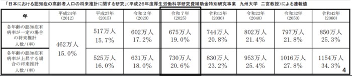 - 2025年の時点で高齢者の約5人に1人が認知症(予測)