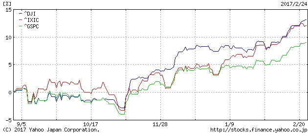 これはトランプ政権が金融を始めとする様々な規制を緩和したり、法人税を引き下げたりなど、いわゆるオールドエコノミーに属する企業に恩恵のありそうな施策を打ち出すと期待されていることに関係しています。