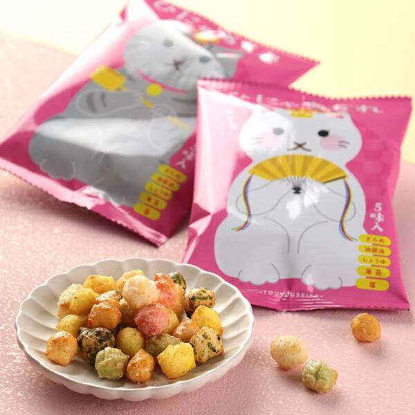 おひなさまの装いをした猫ちゃんのイラストがかわいい小袋のあられ菓子です。イラストはランダムで6袋入っています。現在、オンラインストアでは人気のため売切れ状態に。気になる方は店舗をチェックするか、入荷おしらせメールなどを活用してくださいね。