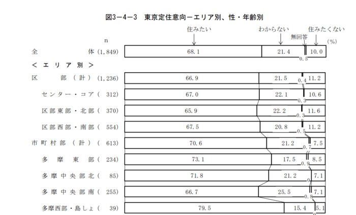 【エリア別】東京の定住意向の割合は