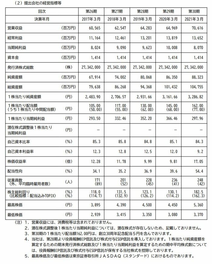 2017年3月期から2021年3月期までの5年間の配当について見てみましょう。